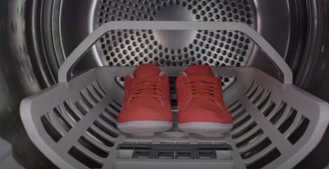 Также нельзя сушить в сушильной машине вещи с декоративными элементами, печатными картинками и верхнюю одежду с пуговицами и молниями.