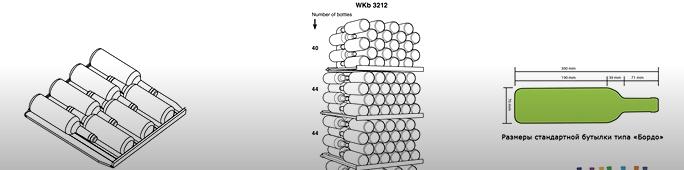 Если добавляется хотя бы одна бутылка другого типа, то вместимость может быть существенно меньше. Некоторые винные шкафы позволяют размещать бутылки в 2 ряда по глубине и несколько рядов по высоте.