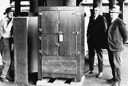 Время не стояло на месте, как и спрос покупателей и заинтересованность производителей в холодильном оборудовании и вот уже в 1925 году в США стали массово выпускать холодильные агрегаты (в течение года было выпущено порядка 64 тысяч единиц). В то время холодильник представлял собой массивный шкаф с очень толстыми стенками до 140 мм, теплоизоляция обеспечивалась за счет пробки, а в качестве охлаждающего вещества применялся аммиак или сернистый ангидрид. Конечно же, при утечке таких реагентов возникала опасность для здоровья людей.