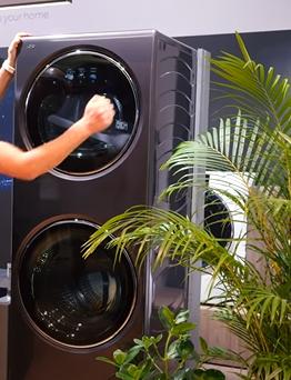 Теперь покупатели, которые не могли позволить себе широкую полногабаритную машину из-за нехватки места смогут разместить у себя в ванной целый прачечный комплекс сохраняя пространство.