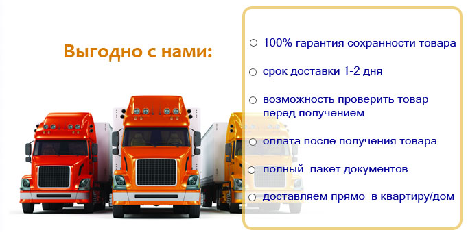 + страхование груза, Вы получите только 100% целый товар. Безопасные покупки - оплата при получении. Полный пакет документов и также сервисное обслуживание от производителя
